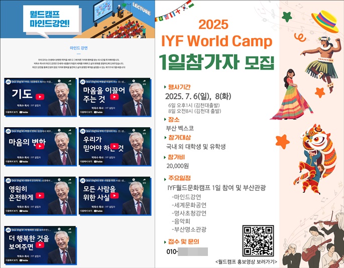 IYF(¼³¸³ÀÚ ¹Ú¿Á¼ö)´Â ºÎ»ê º¤½ºÄÚ¿¡¼­ ¿ùµåÄ·ÇÁ¸¦ ¿­¾ú´Ù. IYF´Â ±¹Á¦Ã»¼Ò³â¿¬ÇÕÀÇ ¾àÀÚ·Î ±â»Û¼Ò½Ä¼±±³È¸ À¯°ü±â°üÀÌ´Ù. ¿ÃÇØ´Â 7¿ù 6ÀÏ¿¡¼­ 13ÀϱîÁö Çà»ç¸¦ °³ÃÖÇß°í, 6ÀÏ¿¡¼­ 10ÀϱîÁö´Â ºÎ»ê º¤½ºÄÚ¿¡¼­, 11~12ÀÏ ¹Î¹ÚȰµ¿ ÈÄ 13ÀÏ ÀÏ»ê ŲŨ½º¿¡ Áý°áÇØ Æó¸·Çß´Ù.