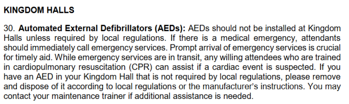 Á¾±³½Ã¼³ÀÇ °æ¿ì ¹ýÀû Àǹ«´Â °¡Áö°í ÀÖÁö ¾ÊÁö¸¸, ¸¹Àº ÀοøÀÌ ¸ðÀÌ´Â ¸¸Å­ ¾ÈÀüÀ» À§Çؼ­ ÀÚüÀûÀ¸·Î AED¸¦ ±¸ºñÇϰí ÀÖ´Ù.