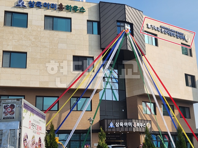 , Áö¿ª»çȸ Æ÷±³ÀÇ Àúº¯À» È®´ëÇÒ °ÍÀ¸·Î º¸ÀδÙ. °Ç¹° Á¤¸é¿¡µµ ¡®»ïÀ°¾Æ¹ÌÈÞÇϿ콺¡¯¶ó´Â À̸§°ú ÇÔ²² ¡®±º°¡Á·°ú ³í»ê½Ã¹ÎÀÇ ¾È½Ä󡯶ó´Â ¹®±¸°¡ º¸ÀδÙ. ±×¸®°í ǪµåÄ«Æä ³»¿¡´Â »ïÀ°½ÄǰÀÌ Àü½ÃµÇ°í ÀÖ¾ú´Ù. ÀÌ ½Ã¼³ÀÇ ¿î¿µ¹æÇâÀÌ °í½º¶õÈ÷ µå·¯³ª´Â ÁöÁ¡ÀÌ´Ù.
