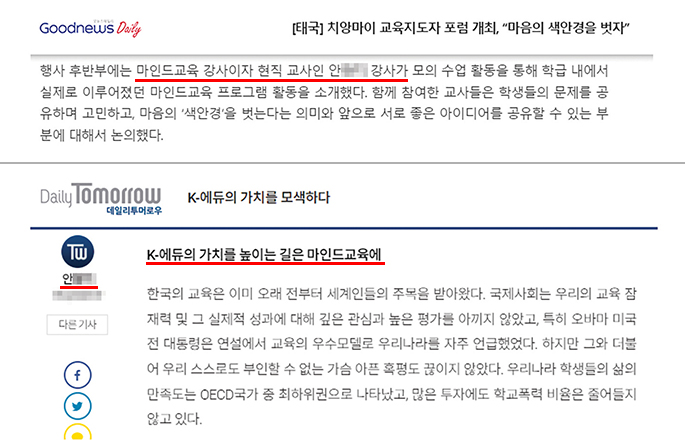 ±èõ´ë´Â ¡®¸¶Àε屳À°¡¯À» ¾Õ¼¼¿ö ±¹Á¦ Çù·Âµµ Ȱ¹ßÈ÷ ÁøÇà ÁßÀÌ´Ù. 7¿ù 8ÀÏ ±â¼Ò¼± À¯°ü±â°ü ±¹Á¦Ã»¼Ò³â¿¬ÇÕ(IYF)ÀÌ ÁøÇàÇÑ ¡®IYF ±³À°Æ÷·³¡¯¿¡¼­ À±¿ÁÇö ÃÑÀåÀº ±èõ´ëÀÇ ¸¶Àε屳À° ¼º°ú¸¦ ¹ßÇ¥Çϸç, ÇÑ Çб⠱³À°¸¸À¸·Î ÇлýµéÀÇ ¸¶À½ÀÌ º¯È­Çß´Ù°í ÁÖÀåÇß´Ù.