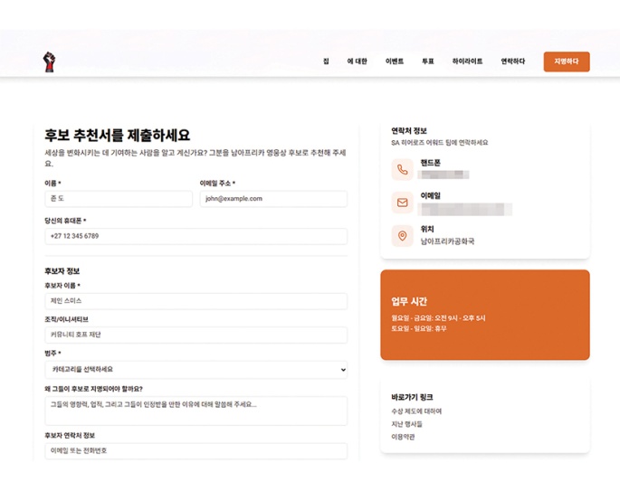 Áö³­ÇØ ¸» ½ÅõÁö À¯°ü ¾ð·Ð ¡¸ÃµÁöÀϺ¸¡¹¿¡ ½ÅõÁöÀÚ¿øºÀ»ç´Ü ³²¾Æ°øÁöºÎ°¡ ¡®³²¾ÆÇÁ¸®Ä« ¿µ¿õ»ó(South African Heros Awards) Áö¿ª »çȸ ºÀ»ç ´ë»ó¡¯À» ¼ö»óÇß´Ù°í ÀüÇß´Ù. ¡¸ÃµÁöÀϺ¸¡¹´Â ÇØ´ç º¸µµ¿¡¼­ Àü±¹ ´ÜÀ§ °øÀÍ È°µ¿À» ´ë»óÀ¸·Î ÇÑ ÃÖ°í ±ÇÀ§ÀÇ ½Ã»ó½ÄÀ¸·Î Æò°¡¹Þ°í ÀÖ´Ù°í ÀÚÂùÇß´Ù.
