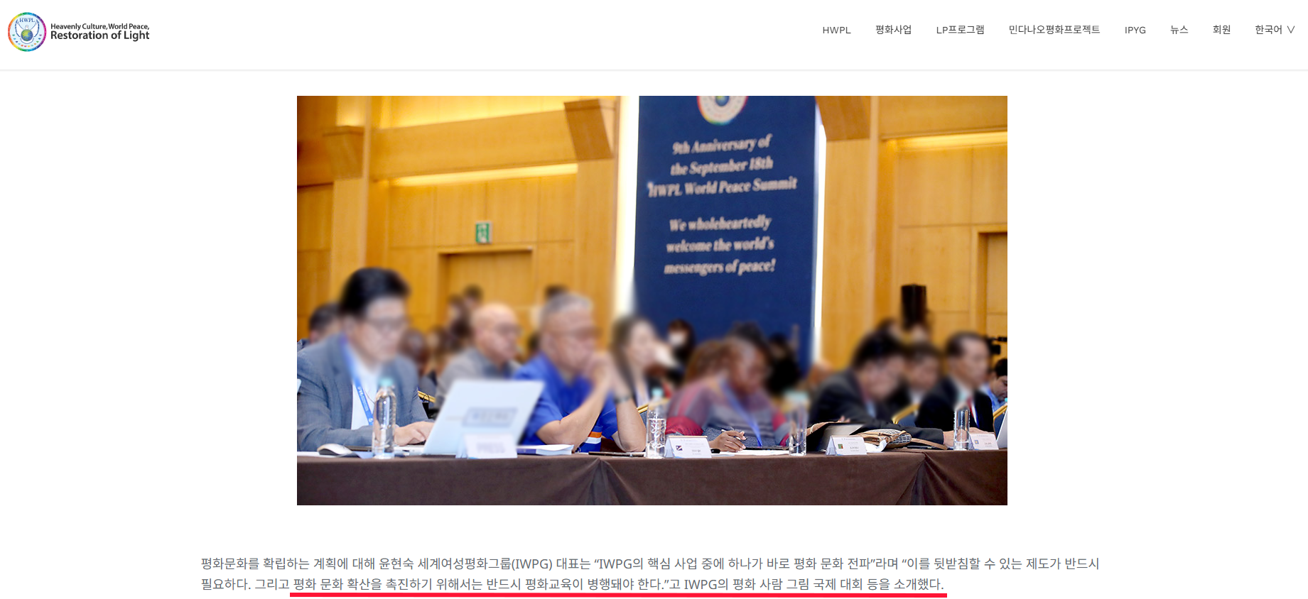 Áï, ÆòÈ­¶ó´Â °¡¸éÀ» ¾²°í ÀÖÁö¸¸, HWPL°úÀÇ °ü°è¸¦ ºÃÀ» ¶§, ¡®Èò¹«¸® âÁ¶¡¯¸¦ ÀÌ·ç±â À§ÇØ Èû¾²°í ÀÖ´Â IWPG°¡ ÁÖ°üÇÏ´Â ÆòÈ­ »ç¶û ±×¸²±×¸®±â ±¹Á¦´ëȸÀÇ ¸ñÀûÀÌ ´Ü¼øÇÑ ÆòÈ­ Á¤Âø¸¸Àº ¾Æ´Ñ °ÍÀ¸·Î ºÐ¼®ÇÒ ¼ö ÀÖ´Ù.