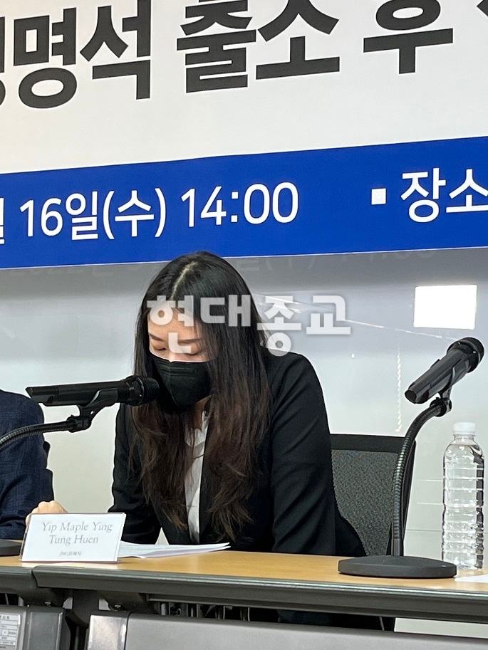 ¼­¿ï Á¾·Î±¸ º¯È£»çȸ°ü¿¡¼­ ¿­¸° ±âÀÚȸ°ßÀå¿£ ¿µ±¹ ±¹ÀûÀÎ ÇÇÇØ ¿©¼º ¸ÞÀÌÇÃ(Maple)¾¾°¡ ³ª¿Í Á¤¾¾·ÎºÎÅÍ Áذ­°£, Áذ­Á¦ÃßÇà ÇÇÇØ¸¦ ÀÔ¾ú´Ù°í ¹àÇû´Ù. ¸ÞÀÌÇþ¾´Â ±âÀÚȸ°ß Á÷Àü ±Ø½ÉÇÑ ½ºÆ®·¹½º·Î À§°æ·ÃÀÌ ¿ÔÀ½¿¡µµ, ÇÇÇØ »ç½ÇÀ» ÇϳªÇϳª È£¼ÒÇß´Ù.