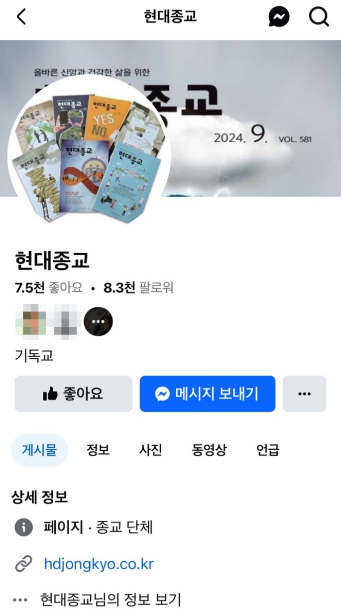 SNS ½Ã´ë¿¡ ¹ß¸ÂÃç ÆäÀ̽ººÏ °èÁ¤À» ¿î¿µÇϰí ÀÖ´Ù. ÆäÀ̽ººÏ ù È­¸é ¿ìÃø »ó´Ü¿¡ ÀÖ´Â µ¸º¸±â ±×¸²À» ´©¸£°í ¡°Çö´ëÁ¾±³¡±¸¦ ÀÔ·ÂÇϸé Çö´ëÁ¾±³ °èÁ¤À» ãÀ» ¼ö ÀÖ´Ù. ÀÌÈÄ Çö´ëÁ¾±³ ä³Î ±âº»È­¸é Áß°£¿¡ À§Ä¡ÇÑ ¡°¸Þ½ÃÁö º¸³»±â¡±¸¦ Ŭ¸¯ÇÏ¸é ¸Þ½ÃÁö¸¦ ³²±æ ¼ö ÀÖ´Ù. ÇÑÆí Çö´ëÁ¾±³ ´ëÇ¥ÀÌÀÚ ¹ßÇàÀΠŹÁö¿ø ¼ÒÀåµµ ÆäÀ̽ººÏ °èÁ¤À» ¿î¿µÇϰí ÀÖ´Ù. Çö´ëÁ¾±³ °èÁ¤À¸·Î Á¢¼ÓÇÑ ¹æ¹ý°ú µ¿ÀÏÇÏ°Ô ¡°Å¹Áö¿ø¡±À» °Ë»öÇϸé Ź ¼ÒÀåÀÇ °èÁ¤À» ¸¸³¯ ¼ö ÀÖ´Ù. ¾Õ¼­ ¼Ò°³ÇÑ °Í°ú µ¿ÀÏÇÑ ¹æ½ÄÀ¸·Î ¹®ÀǸ¦ ³²±â¸é ¼øÂ÷ÀûÀ¸·Î ´äº¯À» ¹ÞÀ» ¼ö ÀÖ´Ù.