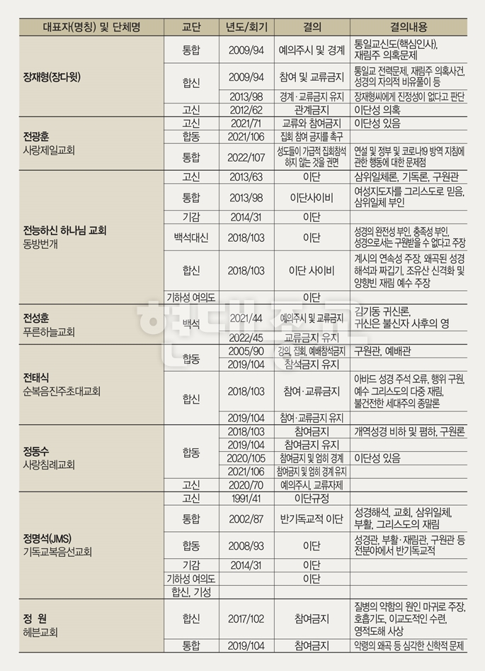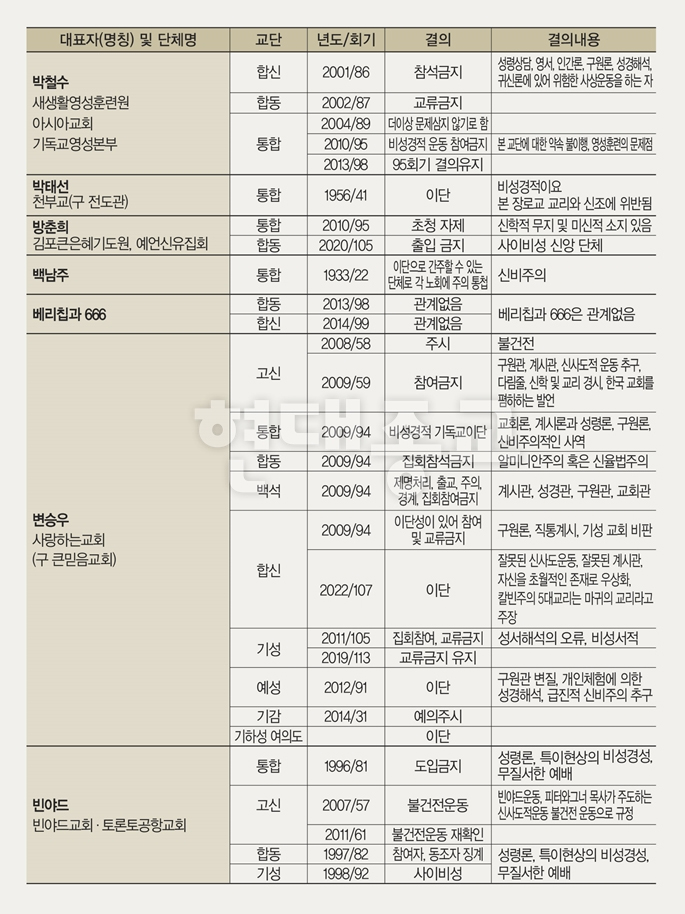 ´ëÇÑ¿¹¼ö±³Àå·Îȸ ÇÕ½Å(ÃÑȸÀå ¹Úº´¼± ¸ñ»ç, ¿¹ÀåÇÕ½Å) ±³´ÜÀº Áö³­ 9¿ù 24~26ÀÏ °­¿øµµ Á¤¼± ÇÏÀÌ¿ø ÆÓ¸®½ºÈ£ÅÚ¿¡¼­ 109ȸ Á¤±âÃÑȸ¸¦ ÁøÇàÇß´Ù. ¿¹ÀåÇսб³´ÜÀº ¸ô¸ó±³(¿¹¼ö±×¸®½ºµµÈı⼺µµ±³È¸)¸¦ ¹Ý±âµ¶±³ ÀÌ´ÜÀ̶ó°í ´Ù½Ã Çѹø ÀçÈ®ÀÎÇß´Ù.